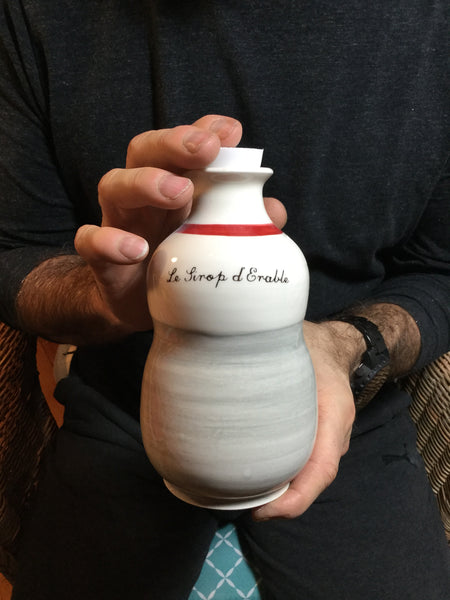 Pichet à sirop motif bas de laine fait à la main.Maple syrup pitcher,inspired by woolen socks